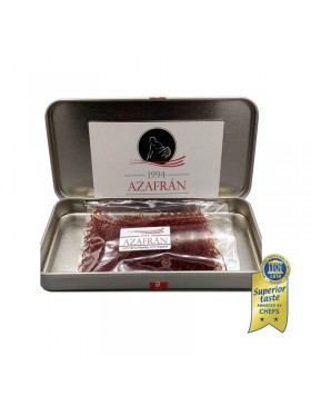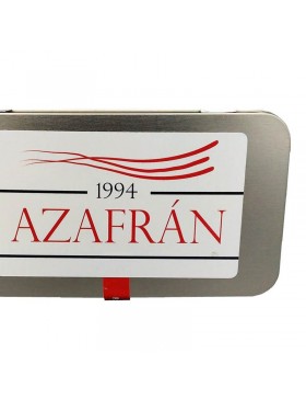 Azafrán en hebra de la máxima calidad. Se presenta en envase metálico rectangular. Producción propia. Respetamos la forma tradicional en todo el proceso de recogida, monda, tueste y posterior almacenamiento.