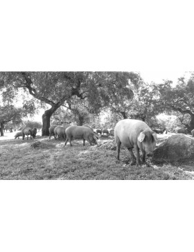 Cuidamos al detalle cada etapa, desde la cría del cerdo hasta la curación de cada pieza durante más de 36 meses. Nuestros cerdos de cebo de campo aprovechan al máximo los recursos otorgados por el entorno natural.