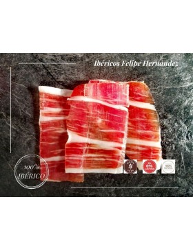 Ibérico loncheado en sobres individuales de 100-130 grs. envasado al vacío.