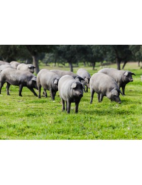 Procedente de cerdos ibéricos, seleccionados expresamente por ser los que presentan las mejores características para la elaboración de productos ibéricos. Viven en libertad en nuestras Dehesas de la Sierra Salmantina (Martiago y Agallas), alimentándose de bellotas durante los 4 meses que disfruta de montanera y de lo que la naturaleza le proporciona el resto del año.